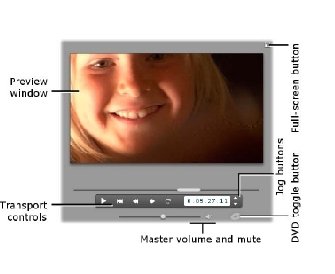 Tombol-tombol ini mengontrol pemutaran di Player Play / Pause The preview tombol Play film dari posisi saat ini Setelah pratinjau dimulai, Putar atau Pause Bila pemutaran berhenti, adegan Album